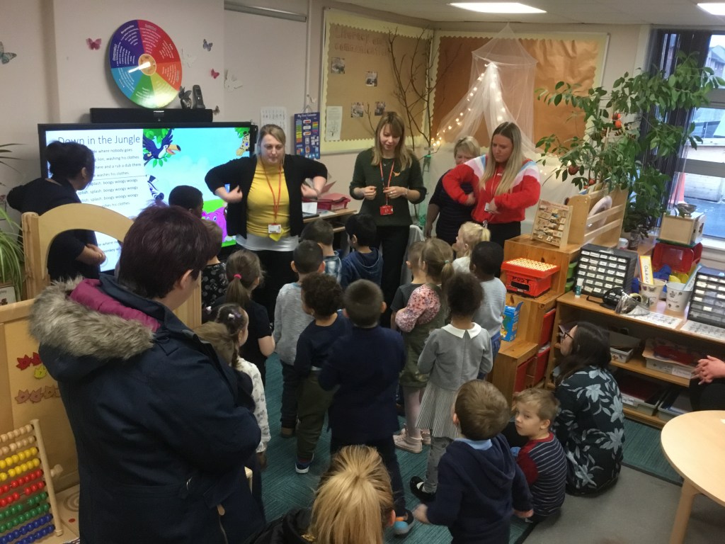 The nursery children have been learning five nursery rhymes and can say them as well as doing all the actions! On Friday we had a nursery rhyme concert as part of our Stay And Play event. Mums and dads that could, stayed and listened to the children’s efforts. Well done everyone!