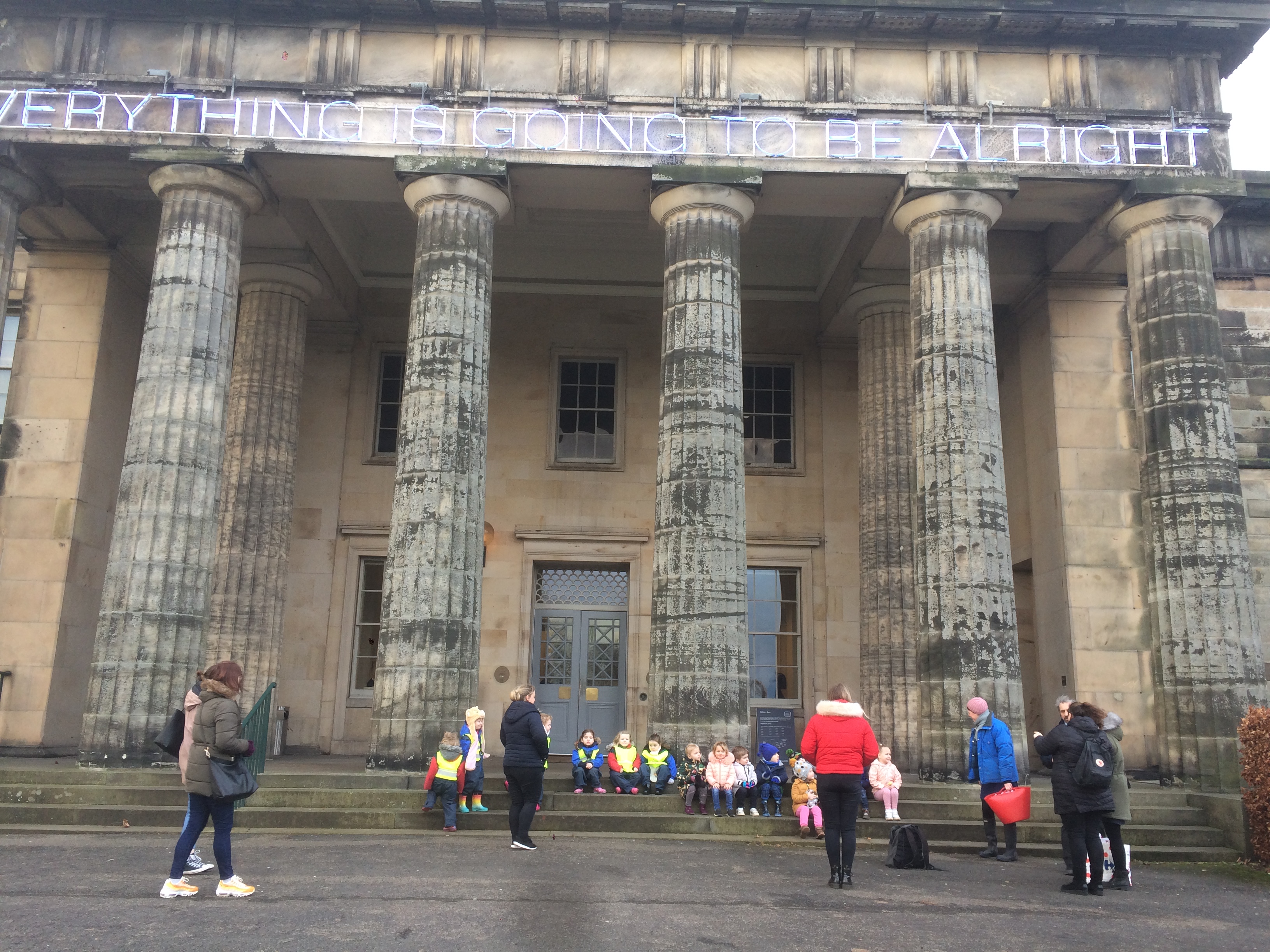 The nursery were recently invited by our neighbours in Pirniehall to come with them to the National Gallery of Modern Art, for a morning of outdoor arty workshops. We had a fantastic time creating ‘Goldsworthy’ style art work, looking at the outdoor installations and generally having fun outside. The children learned that art can come in many different forms and that anyone can create art whenever or wherever they like! Thank you, Mrs Lewis, for organising this fun trip.