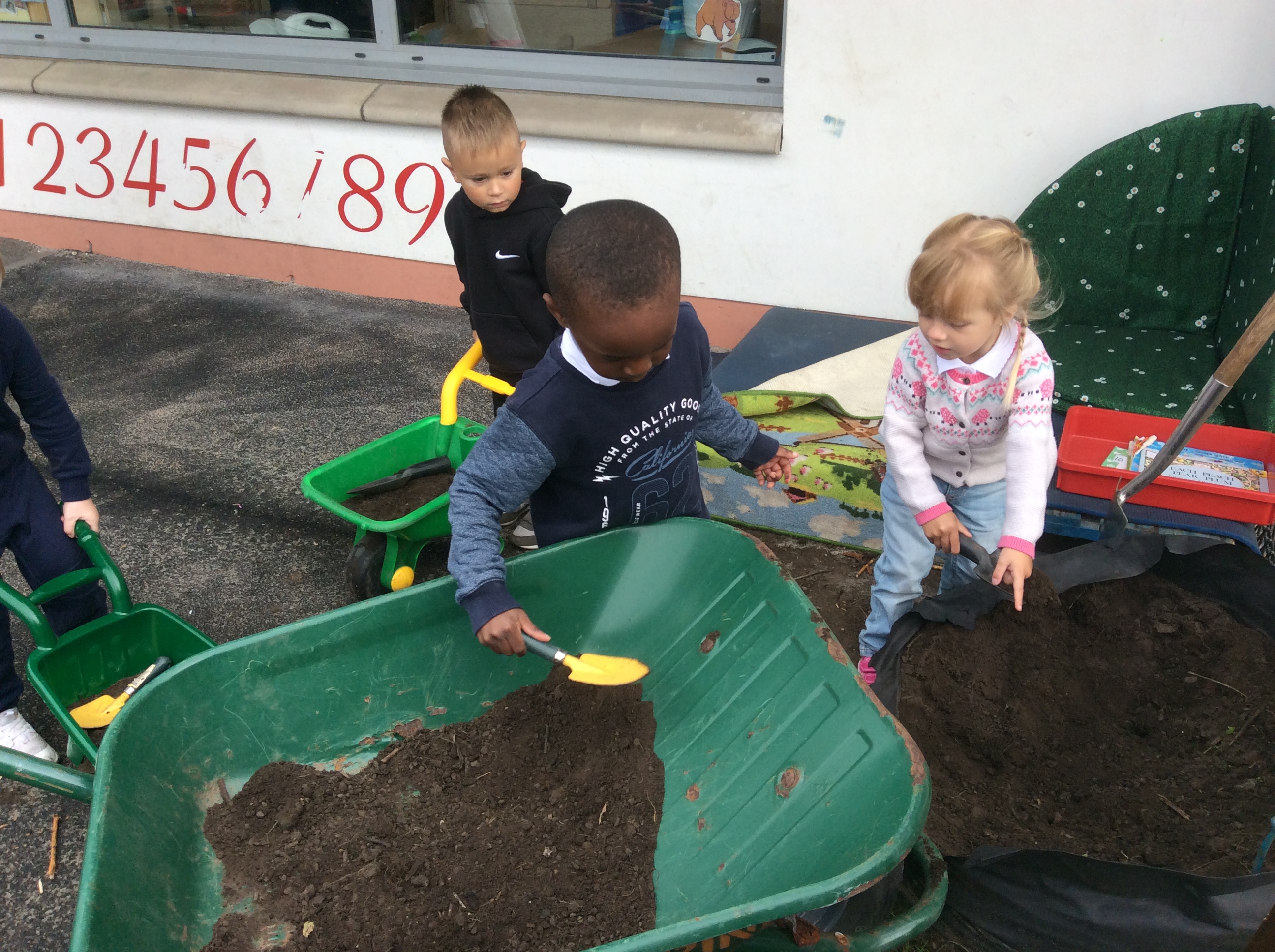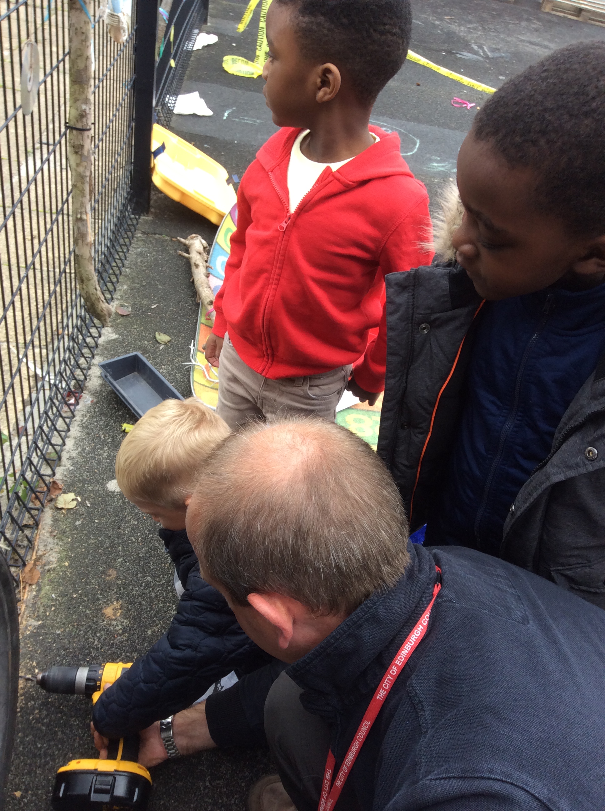 Over the last couple of weeks the children have been working hard to make our outdoor area even more interesting. We have dug, swept, planted, drilled and fixed lots of things. There is still lots to do but we’re good little workers.