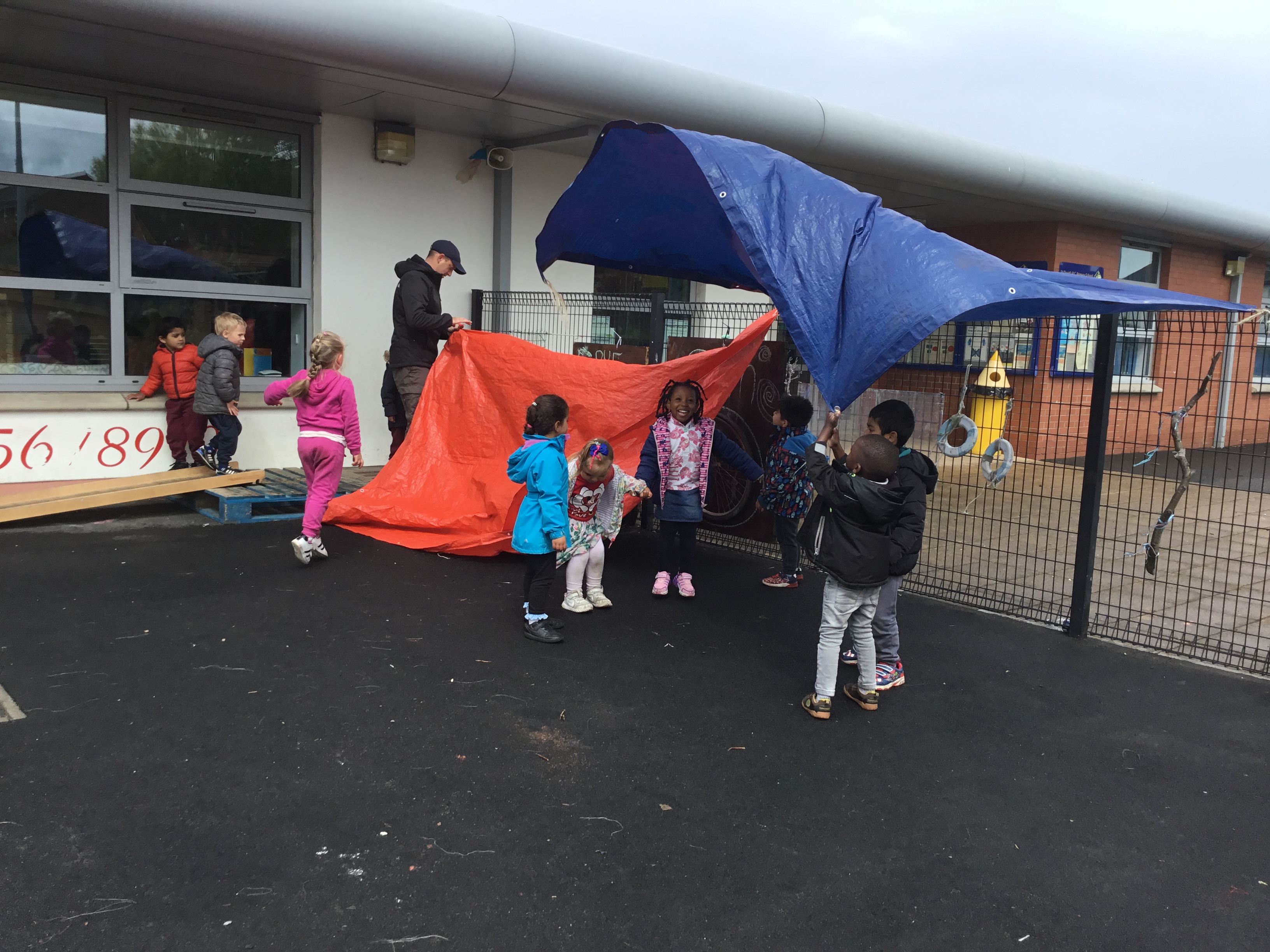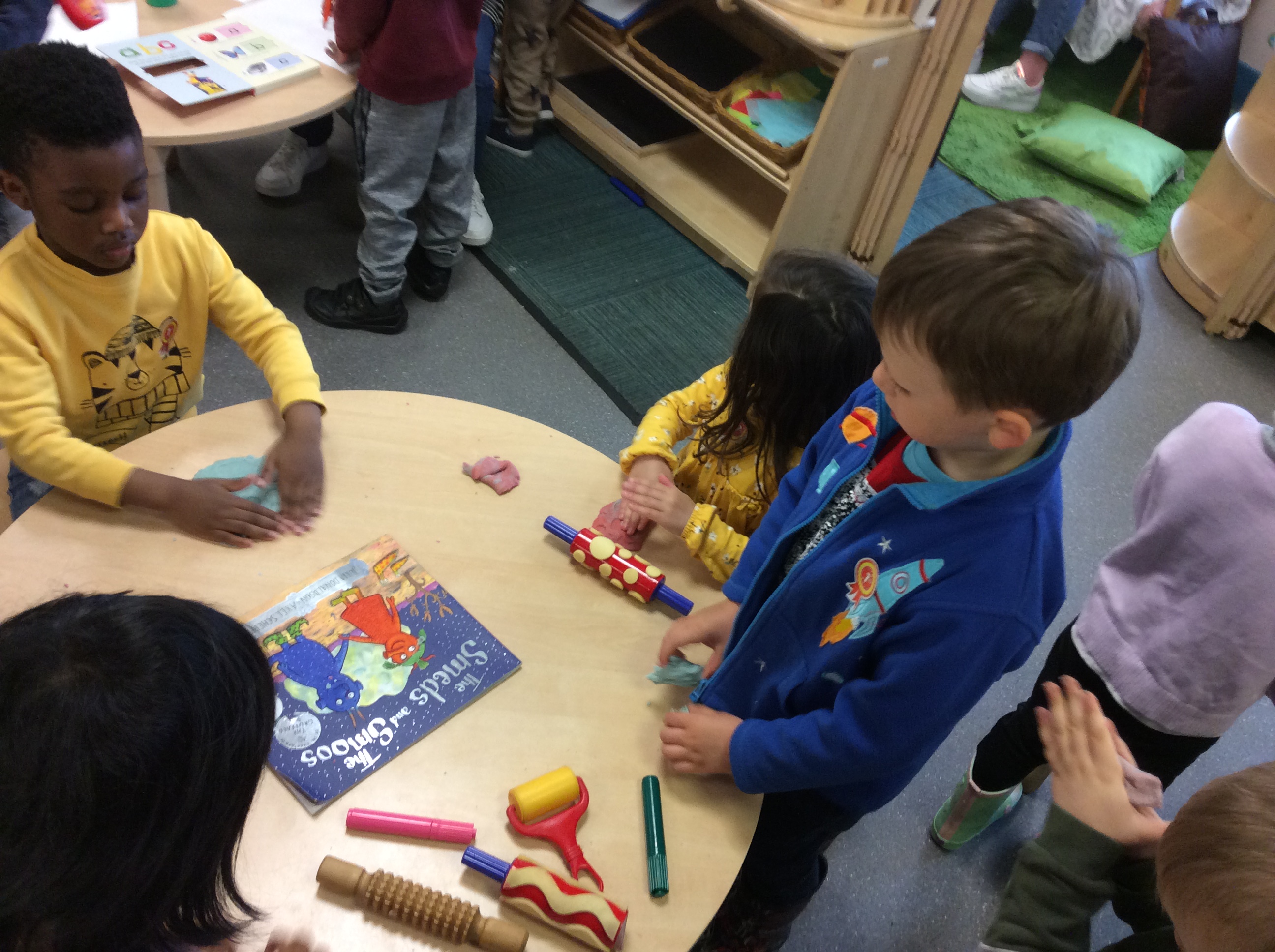 The last few weeks of term see the nursery preparing our pre-school children for school, this is called ‘Transition’. This year the theme for the transition is the book ‘The Smeds and the Smoos’. This is across the whole city so every school P1 class will be looking at this book when your child starts P1. Please discuss the story with your children and if they come home talking about red-Smeds and blue-Smoos you now know what they are talking about. We will be gifting each child a Transition pack so you have lots of activities to help prepare your child for school over the summer holidays. Here are the children playing with red and blue Playdough- realising they can make the colour purple! Playing outside with our massive red and blue flags as well as mixing paint. Please follow the link to see a video of the story being readout loud.