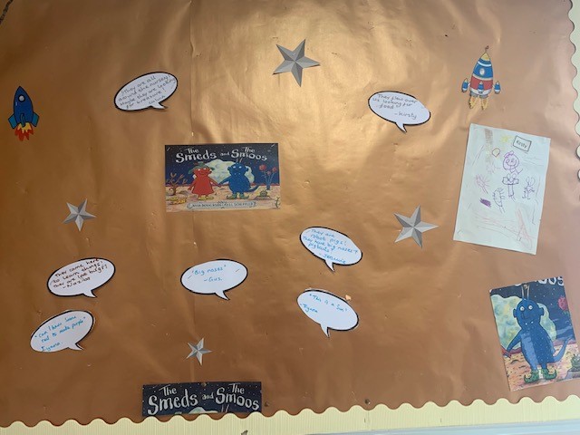 We are continuing to follow the City Of Edinburgh’s transition guide for all our Pre-school children. Following our suggested themes and activities we have been having a great time with the Smeds and the Smoos. Our transition notice board is filling up nicely with quotes from the children and examples of their work. Mr Innes even made a cake to look like the red rocket in the story! All staff are coming up with lots of fun activities for the children as well as taking every opportunity to read the story. Don’t worry if you do not have the book at home. As part of the transition the nursery team have been making up the most amazing transition packs, filled with lots of fun activities (the book) and games for you to do over the summer.