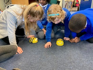 P3 have started our new topic Technologies and Coding. We have been exploring directions and programming our Bee Bots. We have been learning the points of the compass and using them find our way around the playground.