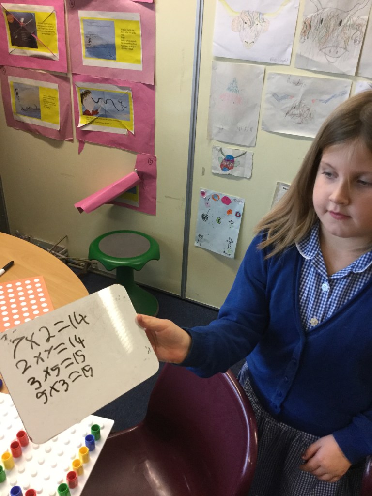 P3 have been learning about arrays in maths to help us learn our multiplication facts.